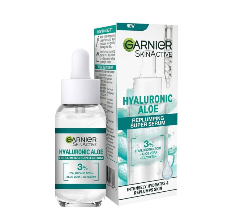 سرم اسیدهیالورونیک گارنیر،حاوی ۳٪ گلیسرین و آلوئه ورا و اسید هیالورونیک میباشد.